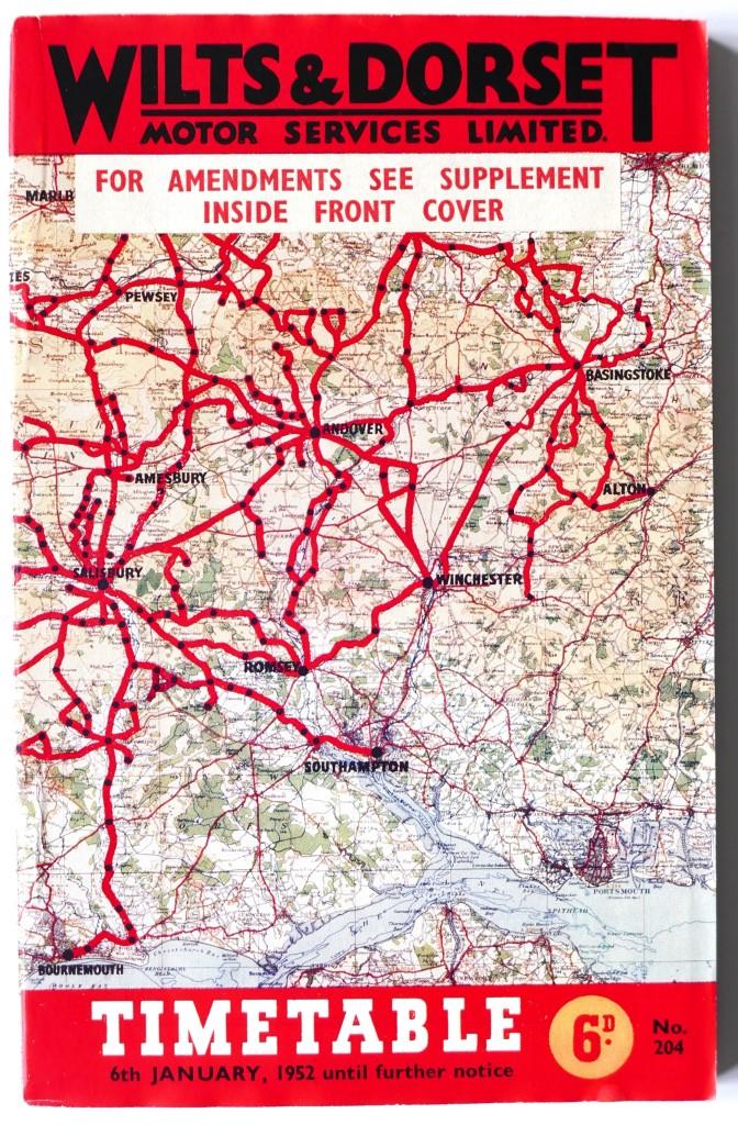| 118 | Wilts & Dorset Motor Services Ltd timetable booklet dated January 1952. Coloured covers show map of area, 146pp plus fold out map. | £12 |  |