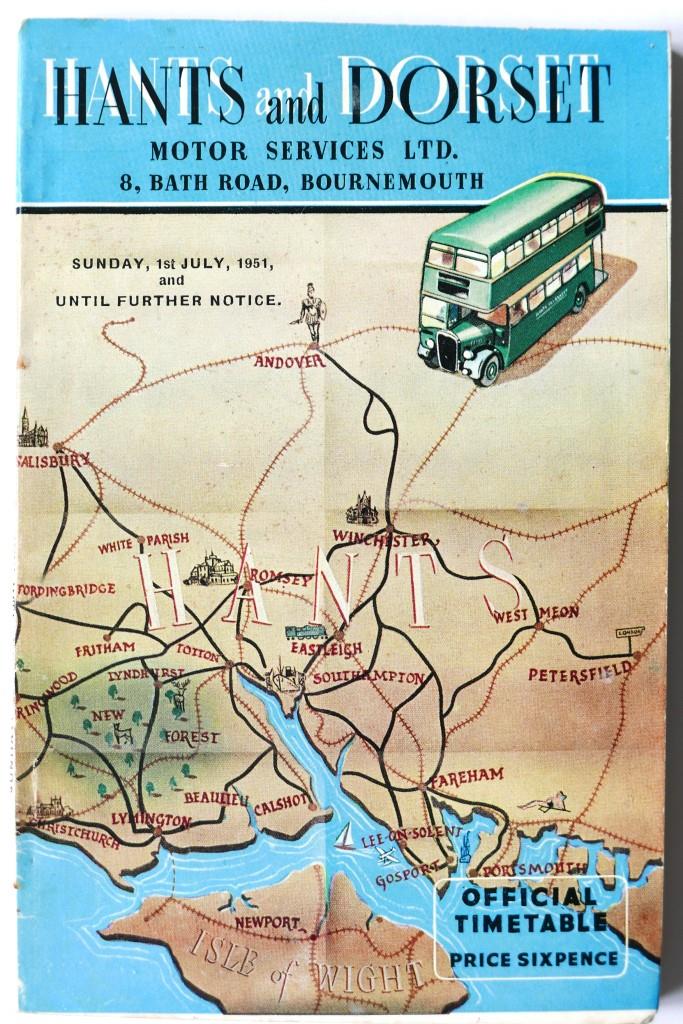 | 119 | Hants & Dorset Motor Services Ltd timetable booklet dated July 1951. Coloured covers show map of area, 152pp plus fold out map. | £12 |  |