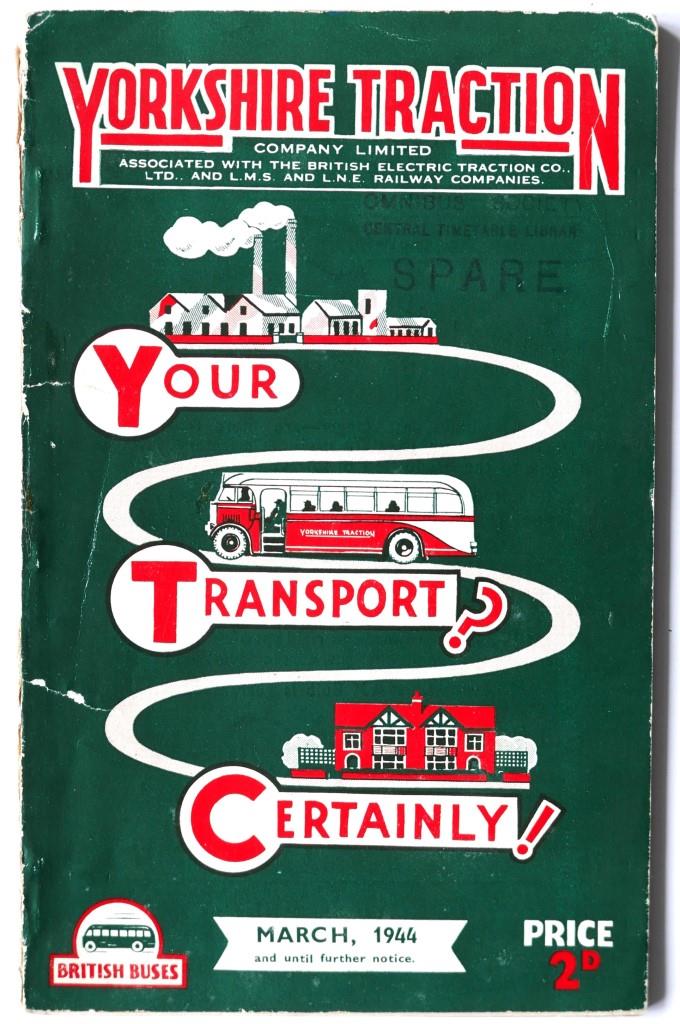 | 124 | Yorkshire Traction Co timetable booklet dated March 1944. 68pp, coloured pictorial cover showing bus, factory and home. | £9 |  |