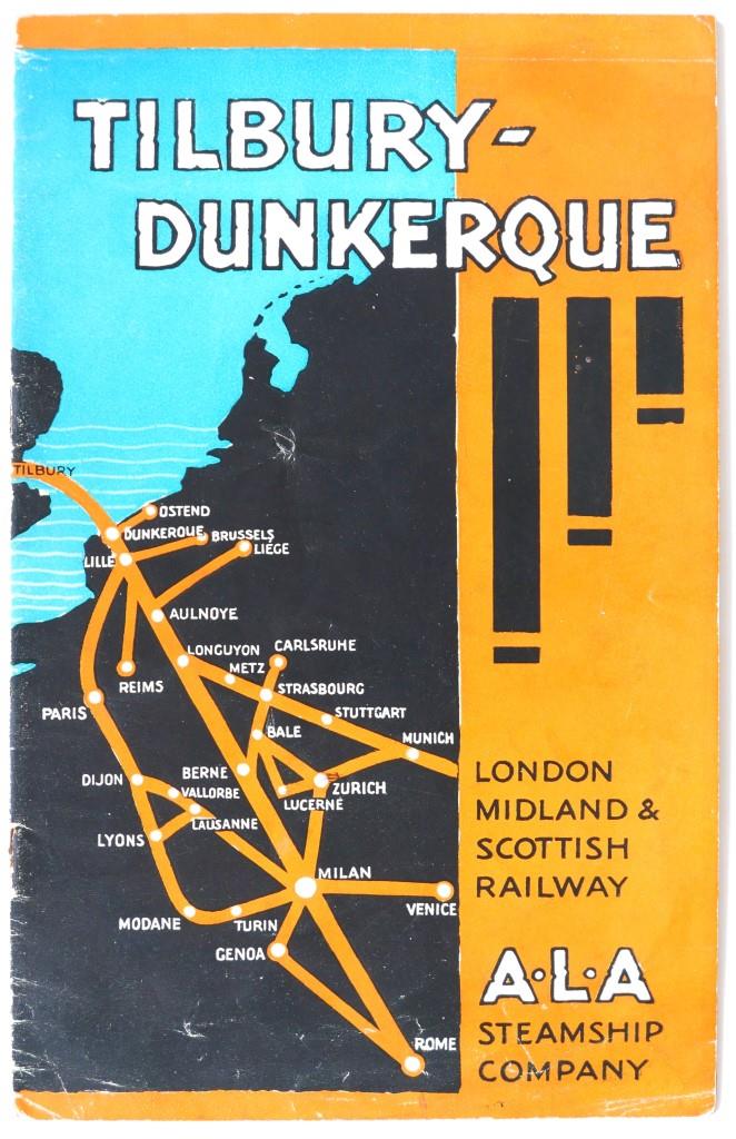 | 693 | SR & LNER joint 16pp booklet with fold out map, ‘Train Ferries for Trade with the Continent’. Details facilities available on the Dover-Dunkerque and Harwich-Zeebrugge services. Nice pictorial coloured cover. Circa 1930s. | £8 |  |