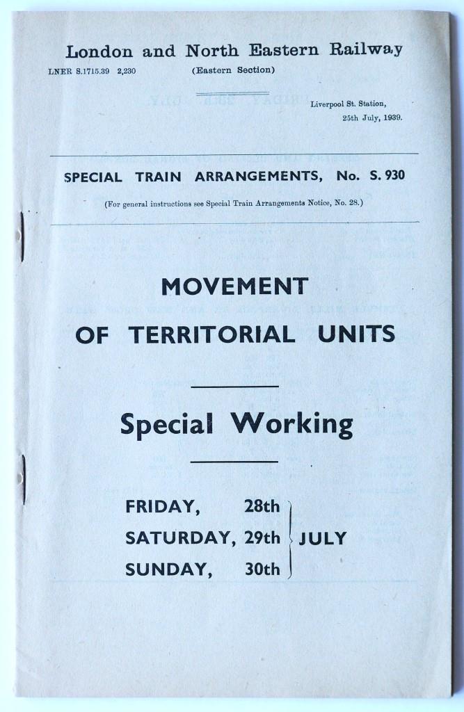 | 694 | SR London West Division supplementary notice No. P97 of 1939 re Special Working Arrangements in connection with the movements of Troops, etc. 11pp dated 17th November 1939. Ring stain on front. | £20 |  |