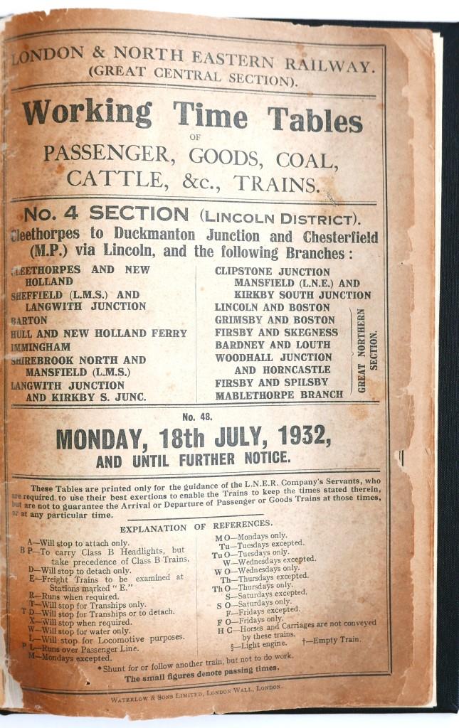 | 62 | BR(E) Great Northern Line section E working timetable of freight trains Sheffield area. 363pp, dated June 1959. | £40 |  |