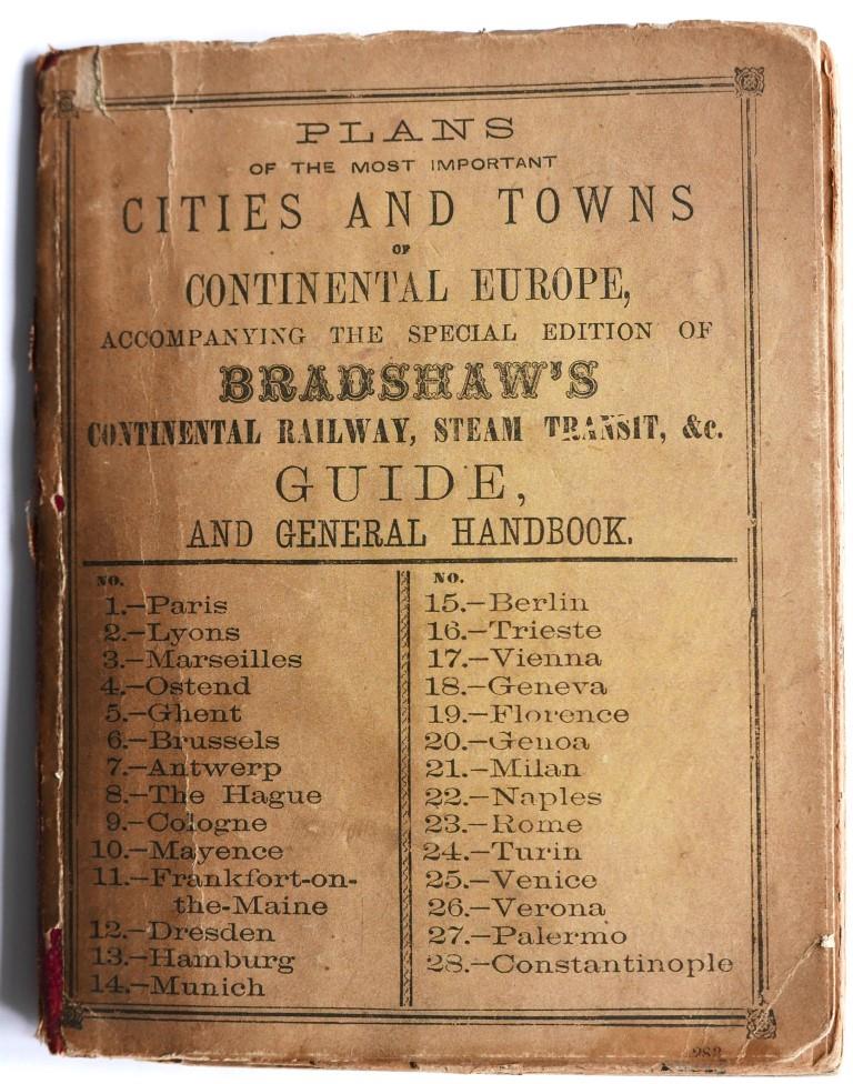 | 31 | Bradshaw’s published ’Railway Manual, Shareholders Guide’ dated 1863. Replacement green cloth bound hardback covers with title in gold on spine, 431pp plus appendix and adverts. Map (with tape repairs) in rear pocket. Click here for second image | £26 |  |