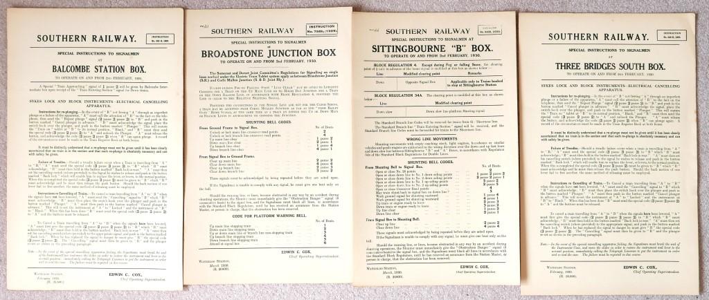 | 700 | 10 SR 1pp, foolscap sized notices of special instructions to signalmen at various boxes including Balcombe, Three Bridges, Sittingbourne, Broadstone, East Grinstead, etc. Dated 1930. | £10 |  |