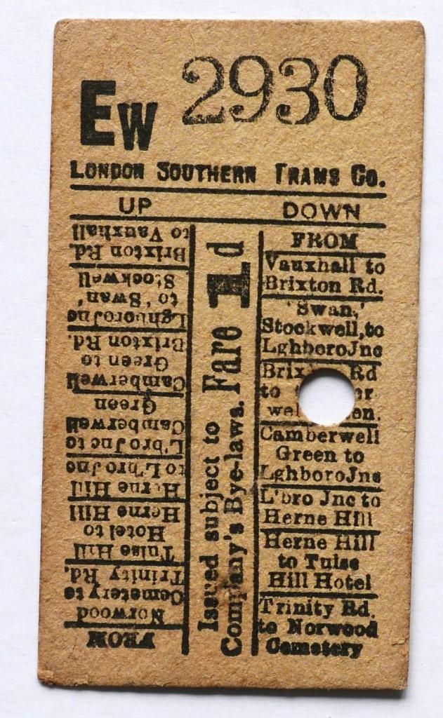 | 715 | London Southern Trams Co 1d geographical punch type ticket. | £65 |  |