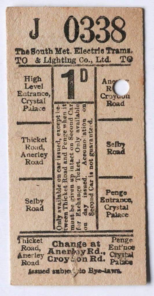 | 717 | South Met Electric Trams & Lighting Co and Croydon Corporation Tramways joint 1d ‘Through Ticket’. | £16 |  |