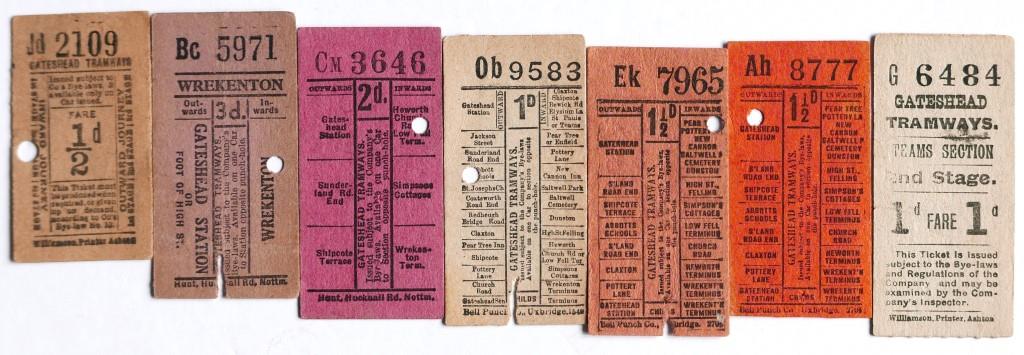 | 722 | 7 Gateshead Tramways geographical punch type tickets. Values ½d – 3d. | £32 |  |