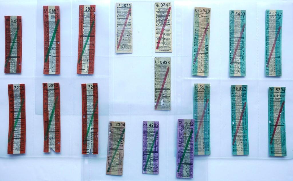 | 733 | Approx 49 LCC Tramways longer type geographical punch type tickets with specific dates overprinted in red. | £42 |  |