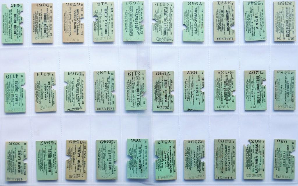 | 739 | Approx 100 Metropolitan Railway whole Edmondson tickets on green coloured card. Most issued. Back damage and creasing to some. | £10 |  |