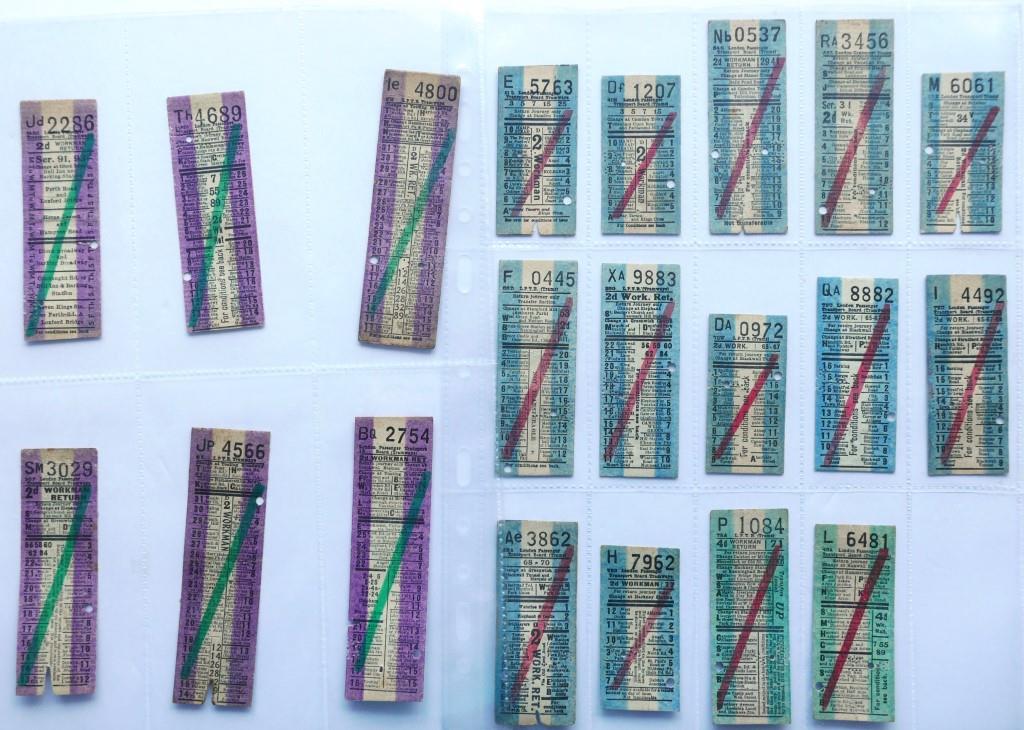| 741 | Approx 38 LPTB Trams geographical punch type tickets with large ‘Scholars 2d Return’ or ‘R’ red overprints. | £36 |  |