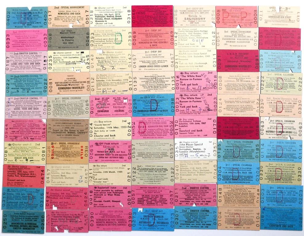 | 777 | Approx 100 BR whole Edmondson tickets for special trains, excursions, charters and rail tours circa 1960s – 80s. Good variety. | £10 |  |