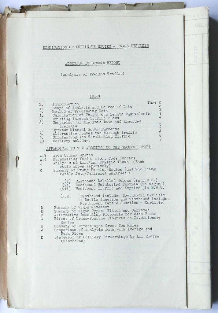 | 80 | BR report on the examination of duplicate trans Pennine routes – addendum to the second report (analysis of freight traffic). 50+ typescript pages and charts. Dated January 1964. | £170 |  |
